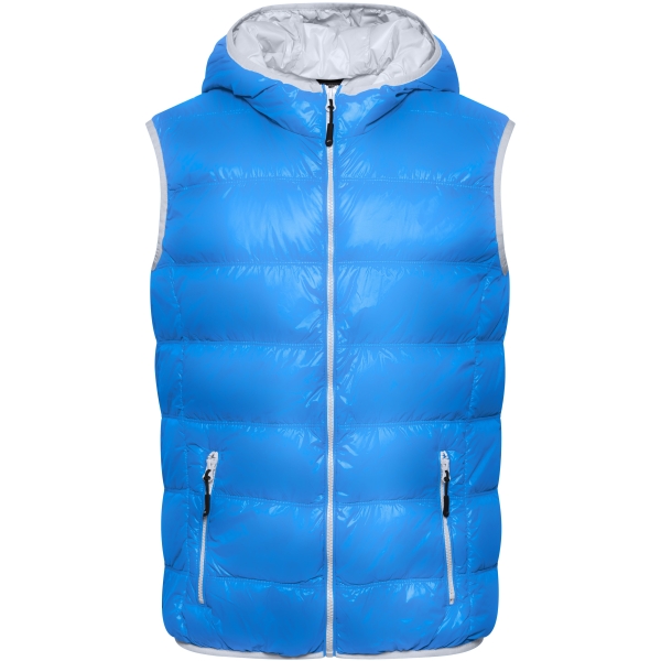 Ultra lehká péřová vesta s kapucí v ležérním stylu.