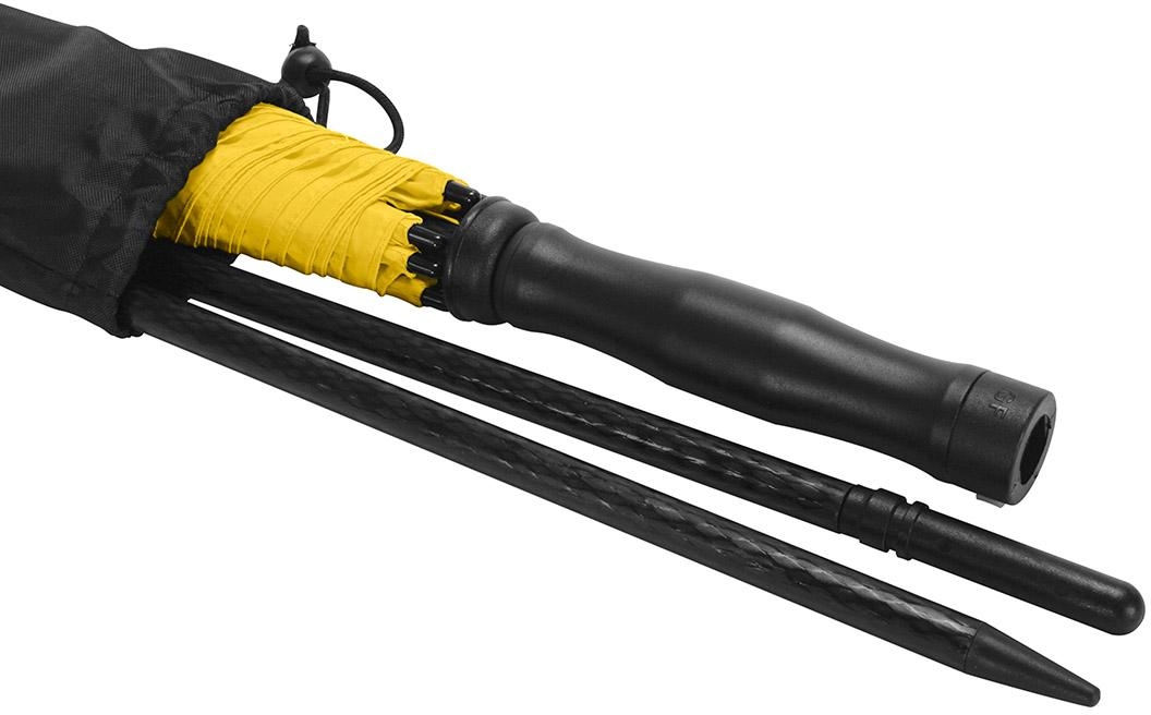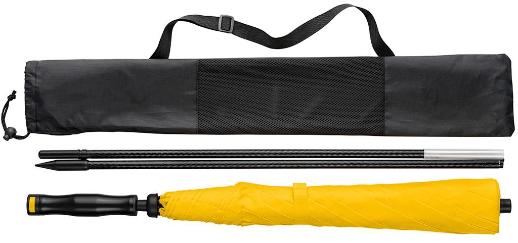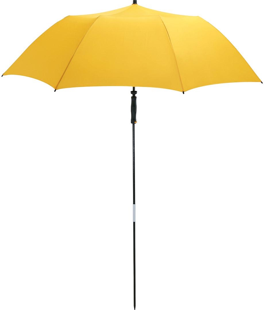 Easy to handle thanks to hand friendly runner, high-quality Windproof PLUS system for maximum frame flexibility in stormy conditions, ribs and 2-section foldable lower shaft made of sturdy fibreglass, lower shaft with tip for fixing in the ground, cover with sun protection factor UPF 50+, convenient carry case with shoulder strap and mesh, suitable for trolley suitcases, hospitable diameter, parasol also useable as umbrella, excluding ground spike (art. 8939)