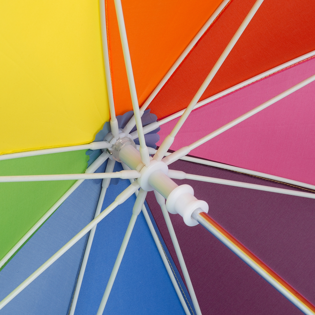 Simple and safe handling ensured by springless safety slider, high-quality Windproof PLUS system for maximum frame flexibility in stormy conditions, frame with extremely sturdy fibreglass ribs, chromed steel shaft, rounded and enlarged tips to minimize the risk of injuries, rounded top, colour coordinated crook handle
