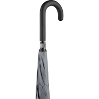 Easy to handle thanks to sliding safety runner, high-quality Windproof PLUS system for maximum frame flexibility in stormy conditions, fibreglass frame opening from the inside out, flexible fibreglass ribs, double cover with lasered ventilation pattern to avoid the build-up of air, cover with trendy reflective piping in silver, soft-touch crook handle with promotional labelling option. Also available as mini umbrella (art. 5415).