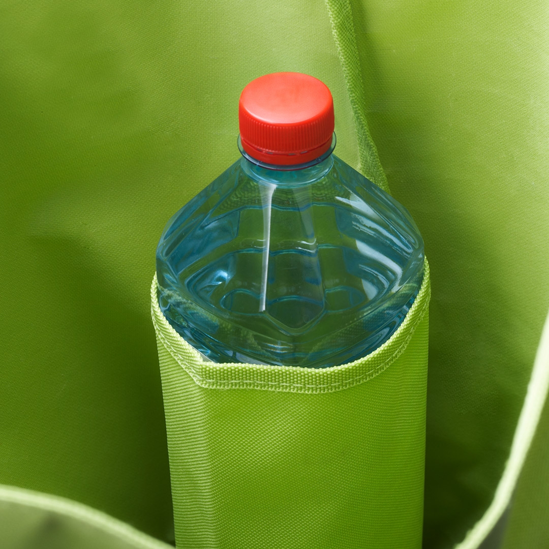 Huge main compartment with large storage space for beach equipment or purchases, zipper pocket for separate valuables, smartphone pocket and bottle bag, adjustable straps with sturdy snap hook for fastening e. g. at parasol