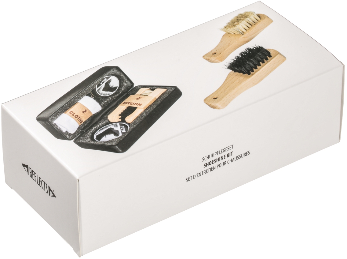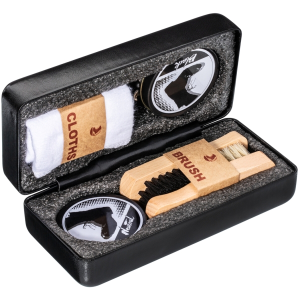 The beautiful, sturdy plastic shoe polish box featuring polish, two soft cleaning cloths and two shoe brushes for dark and light shoes is the perfect product for purists who appreciate clear lines.<br />