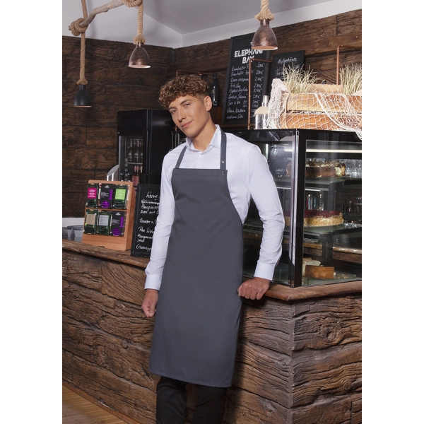 | bib apron with straps made of apron fabric, with reinforced stress points