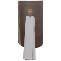 | cognac leather strap on the right front for attaching a waiter's holster or kitchen towel