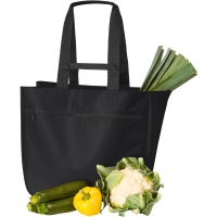 Flexibilní, prostorná nákupní taška pro mnohostranné použití, velká hlavní přihrádka s nožičkami na dně; přední kapsa na zip; systém přenášení s dvojitými uchy a polstrovaná manžeta pro nejlepší pohodlí při přenášení
