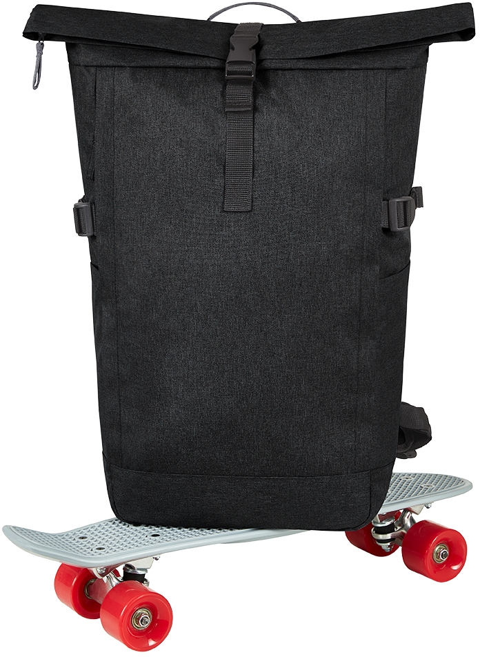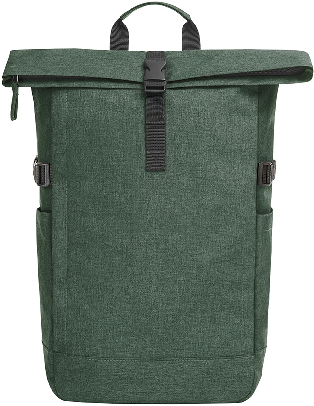 Městský batoh s hlavní přihrádkou na zip a uzavírací sponou; vrchový materiál RPET; polstrovaná zásuvná přihrádka a vnitřní prvky organizéru; boční přední kapsa na zip; dvě boční zásuvné přihrádky; fixační popruhy; zadní kapsa na zip; polstrovaný systém přenášení s výškově nastavitelným hrudním pásem; držadlo