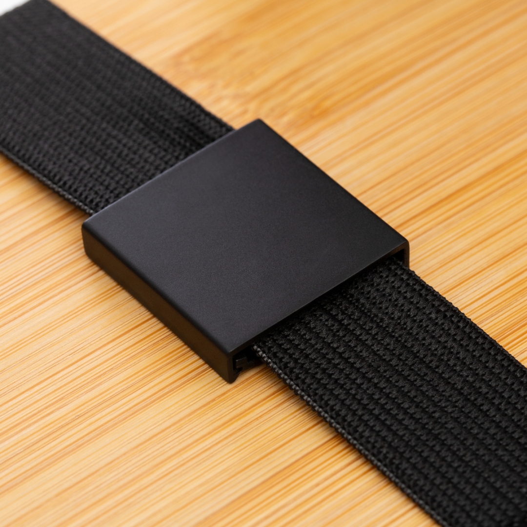 The lid can be customised with CO2 laser engraving, UV or pad printing. The plastic food containers can be individualised with a pad print. A print can be made on the plastic buckle of the band.<br />