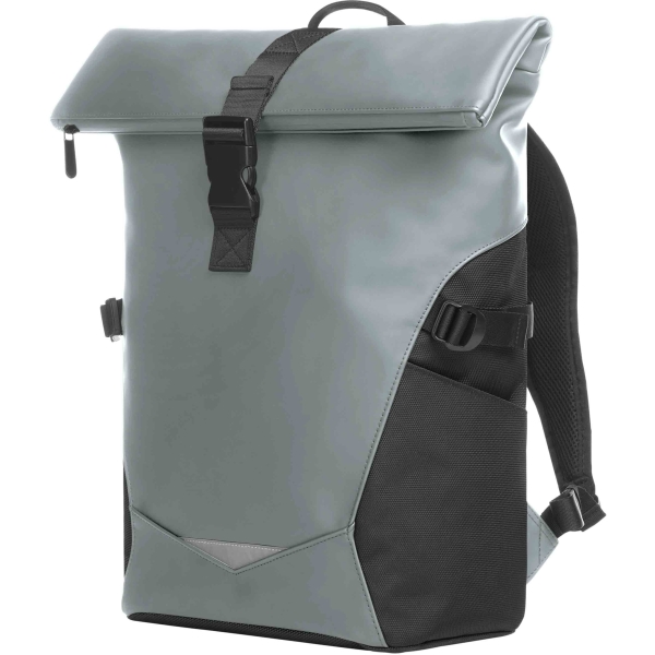 dynamický rolovací batoh; hlavní kapsa se zipem a přezkou; velká přední kapsa se zipem; dvě boční otevřené kapsy; fixační popruhy; dekorativní reflexní vsadka na přední straně; uvnitř polstrovaná otevřená kapsa zajištěná suchým zipem; na zadní straně skrytá kapsa se zipem; pečlivě polstrovaný systém pro pohodlné přenášení s individuálně nastavitelným hrudním pásem; poutko a držadlo pro přenášení