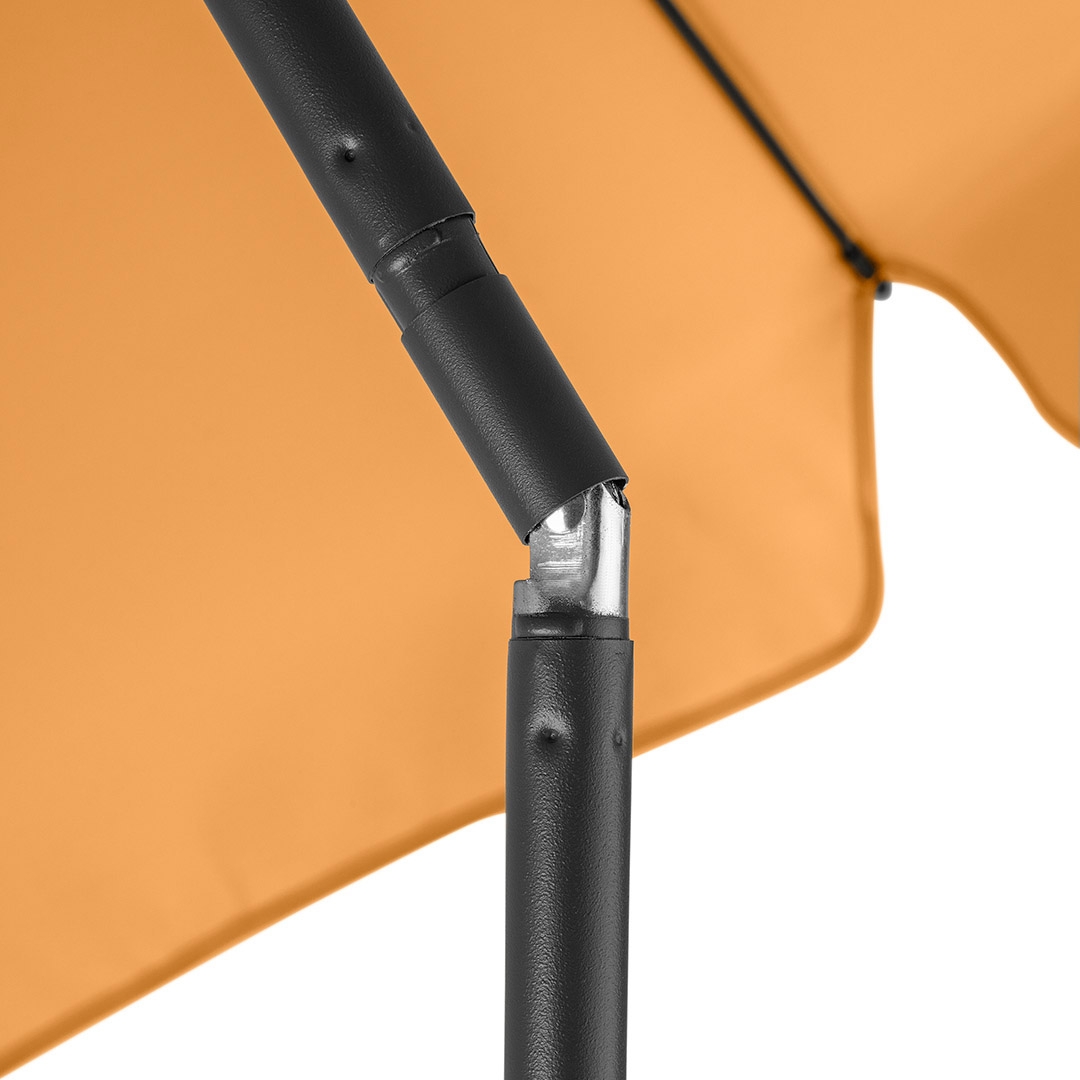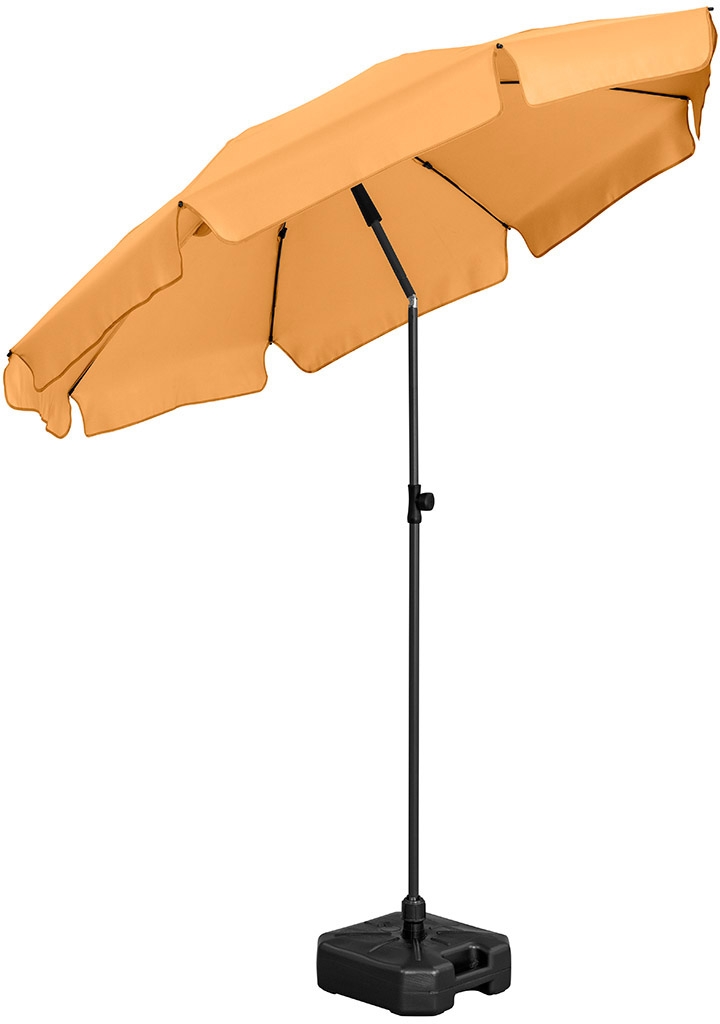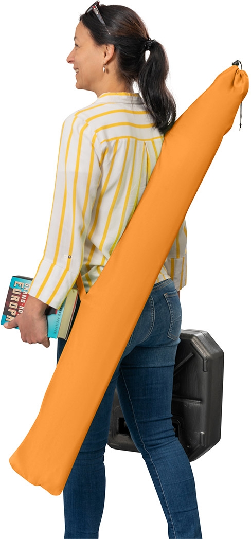 Easy handling thanks to safety runner, very robust fibreglass ribs, two-part and infinitely height-adjustable shaft with tilt mechanism for tilting the umbrella, shaft in elegant titanium finish, lower shaft with approx. 120 cm length and twist lock for secure fixing, comfortable carrying case, cover with UPF 50+ sun protection factor, cut volant, exclusive parasol base (Art. 8920 or Art. 8905) / ground spike (Art. 8939)