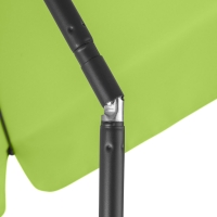 Easy handling thanks to safety runner, very robust fibreglass ribs, two-part and infinitely height-adjustable shaft with tilt mechanism for tilting the umbrella, shaft in elegant titanium finish, lower shaft with approx. 119 cm length and twist lock for secure fixing, comfortable carrying case, high-quality cover with a grammage of approx. 200 g/m² and UPF 50+ sun protection factor, cut volant, exclusive parasol base (Art. 8920 or Art. 8905) / ground spike (Art. 8939)