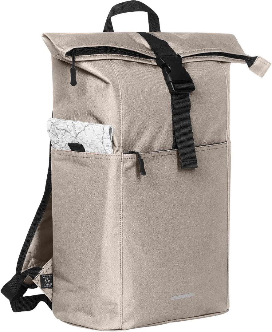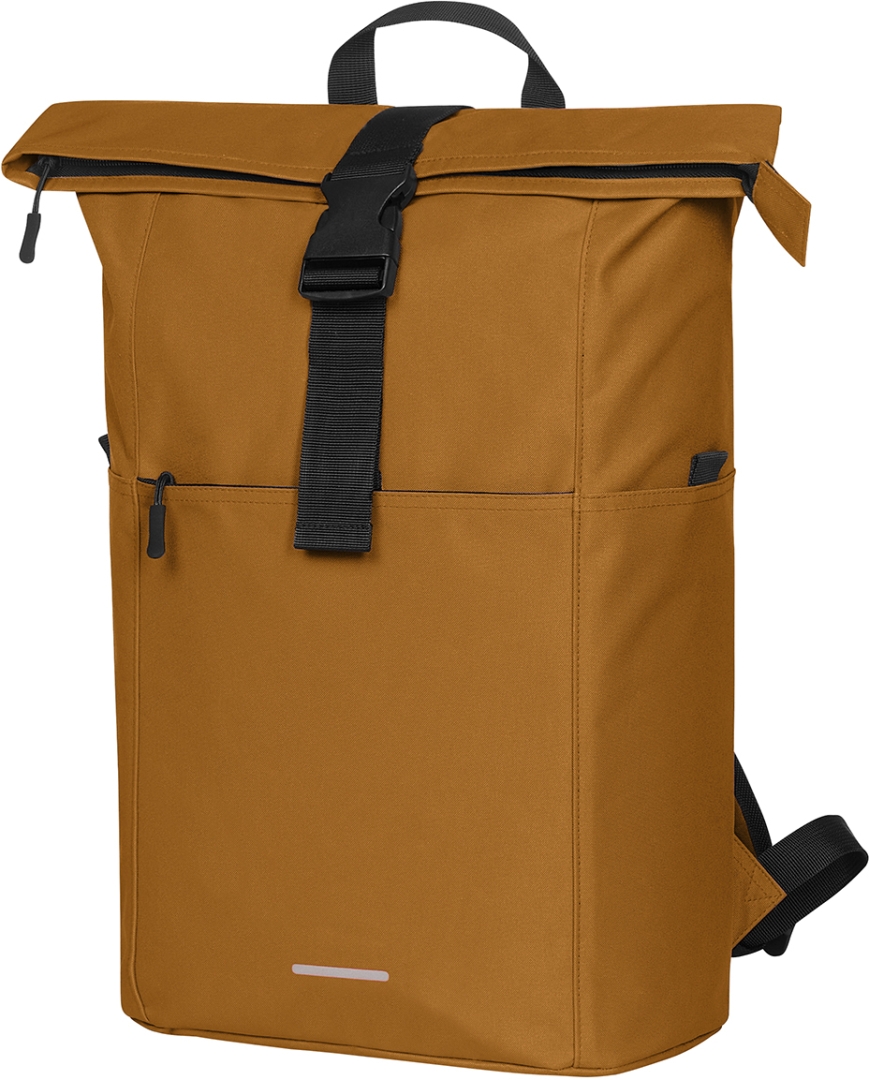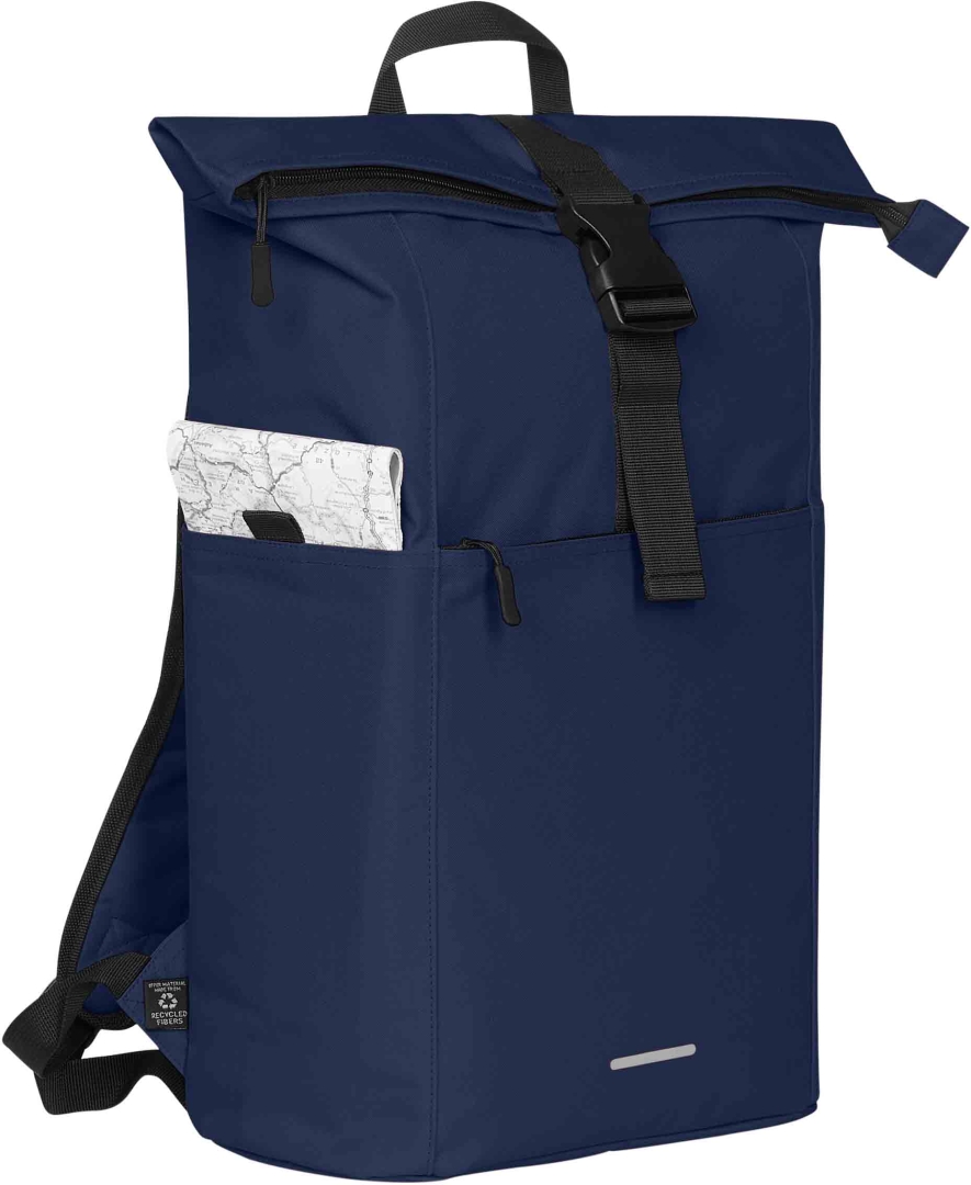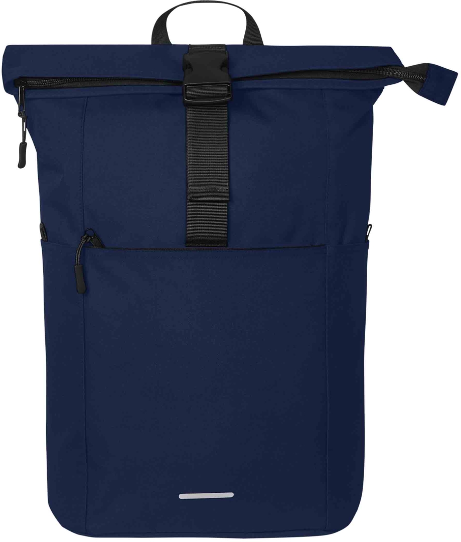 praktický rolovací batoh, recyklovaná vnější tkanina, velká hlavní přihrádka na zip a přídavné zapínání, atraktivní reflexní potisk, vnější materiál RPT, velká polstrovaná kapsa, kapsička na airtag, vpředu velká přední kapsa na zip, dvě boční kapsy, např. na láhev s vodou, polstrovaný nosný systém, madlo