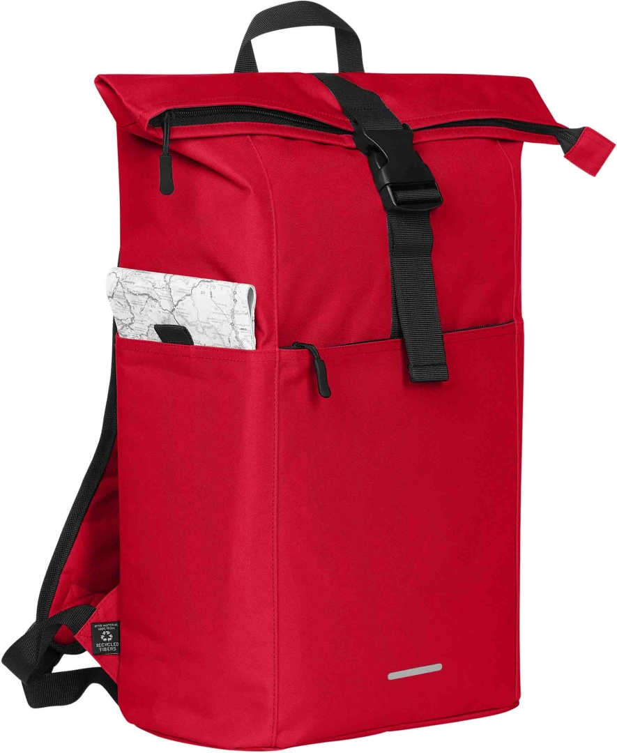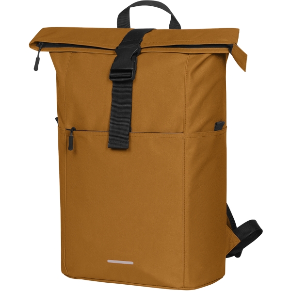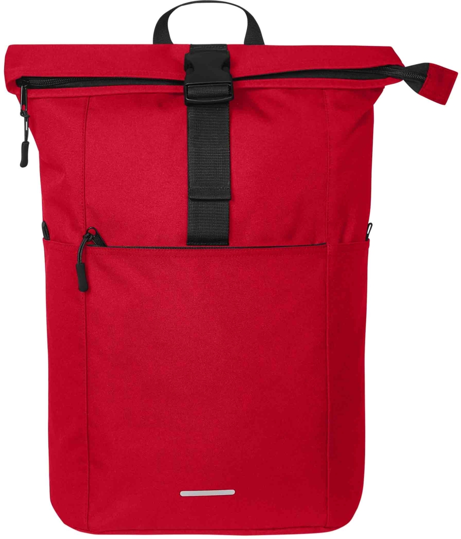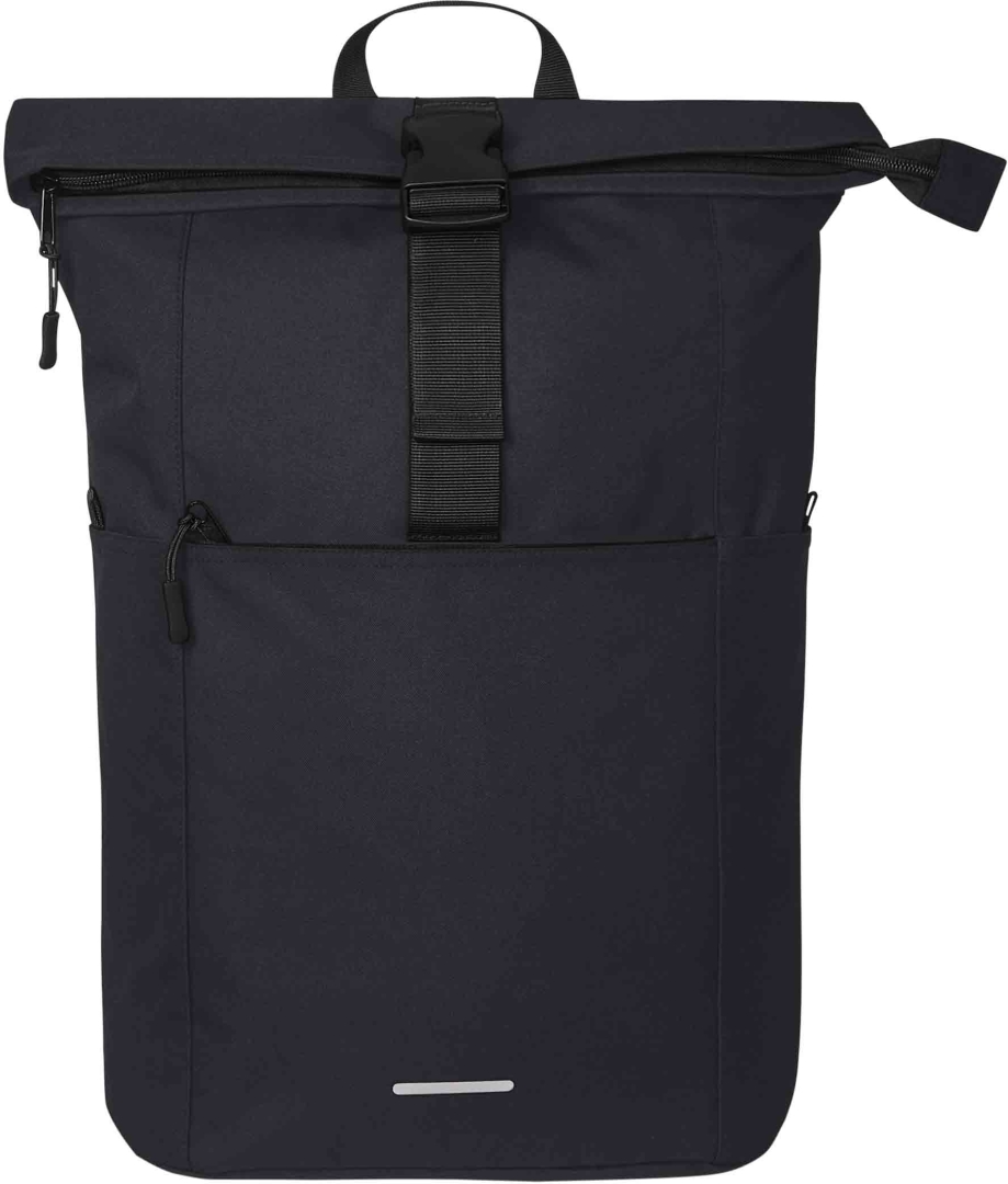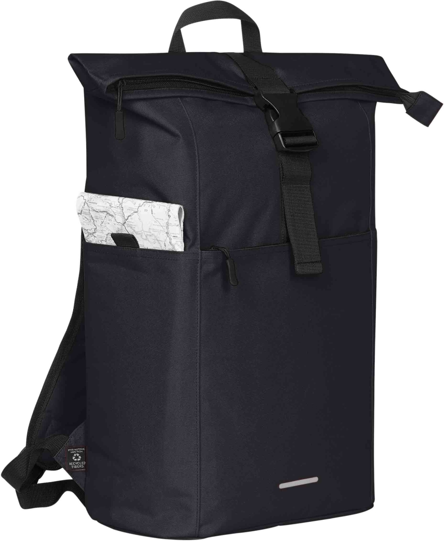 praktický rolovací batoh, recyklovaná vnější tkanina, velká hlavní přihrádka na zip a přídavné zapínání, atraktivní reflexní potisk, vnější materiál RPT, velká polstrovaná kapsa, kapsička na airtag, vpředu velká přední kapsa na zip, dvě boční kapsy, např. na láhev s vodou, polstrovaný nosný systém, madlo