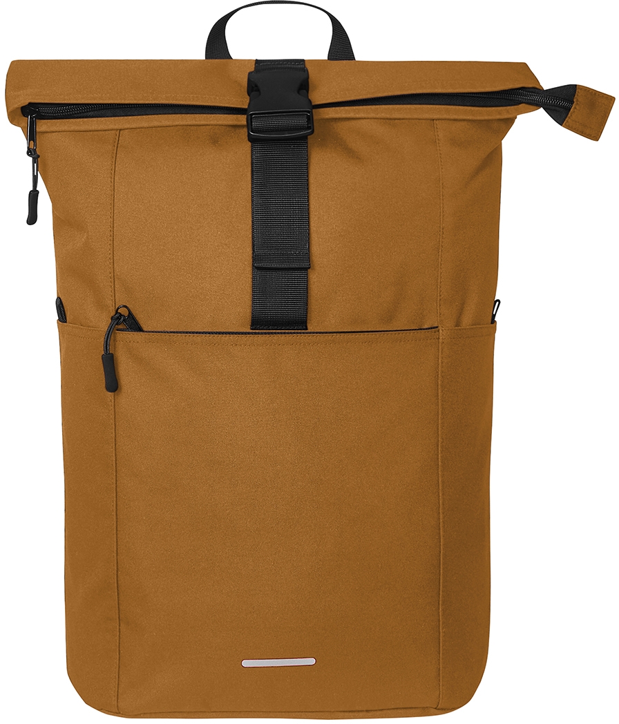 praktický rolovací batoh, recyklovaná vnější tkanina, velká hlavní přihrádka na zip a přídavné zapínání, atraktivní reflexní potisk, vnější materiál RPT, velká polstrovaná kapsa, kapsička na airtag, vpředu velká přední kapsa na zip, dvě boční kapsy, např. na láhev s vodou, polstrovaný nosný systém, madlo