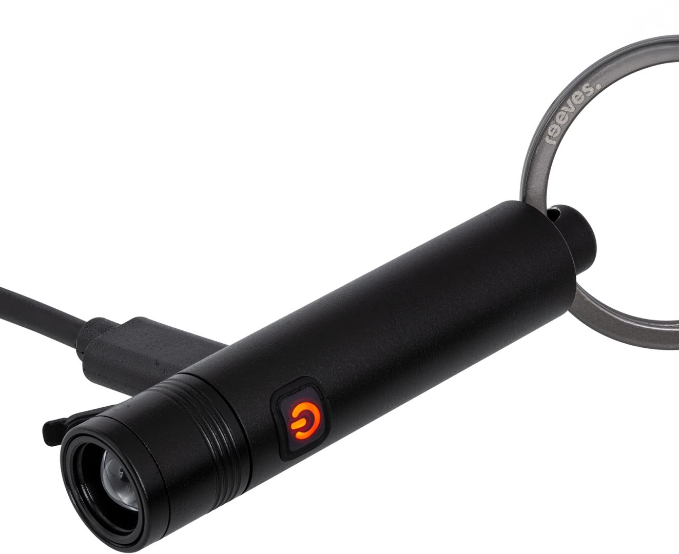 Imagine coming home at night, fumbling in the dark for the keyhole, or searching for something in a dimly lit basement. In such moments, this exclusive REFLECTS® design is your reliable source of light. This rechargeable, splash-proof LED flashlight is attached directly to a keyring. Made from recycled black anodized aluminum, the lamp stands out with its lightweight, timeless design and adjustable light intensities. All necessary safety protections are built-in for secure use.<br />