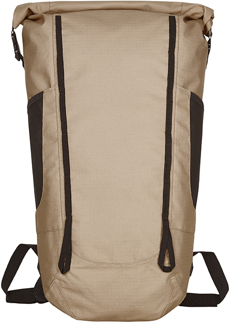 vysoce funkční, vodotěsný batoh pro volný čas, zavinovací zavírání s s bočními přezkami, gumové poutko na přečnívající materiál popruhů, svařené švy, boční kapsy z elastické síťoviny, poutko na přední straně, vnitřní přihrádka na zavěšení na zip; polstrovaný nosný systém s individuálně nastavitelným hrudním popruhem, madlo