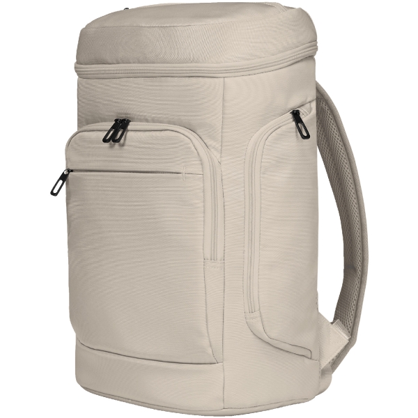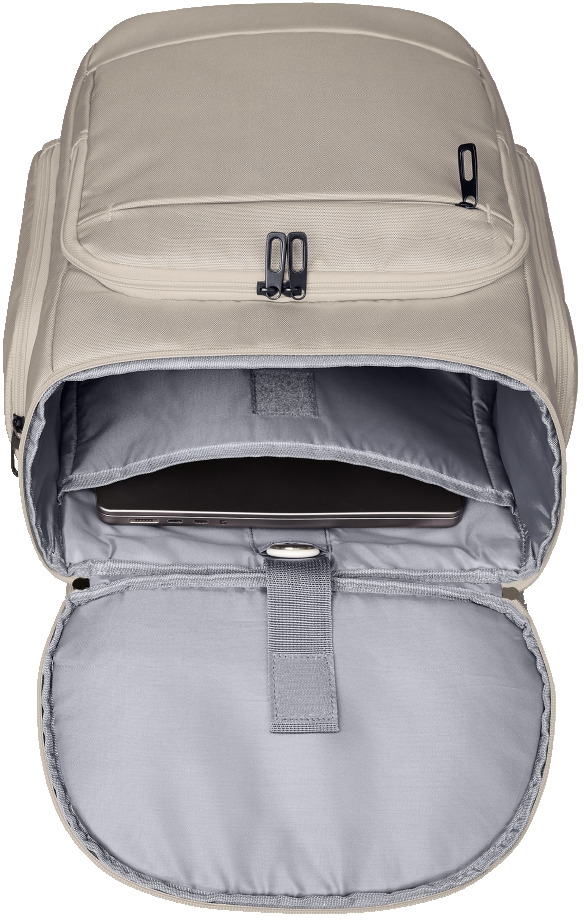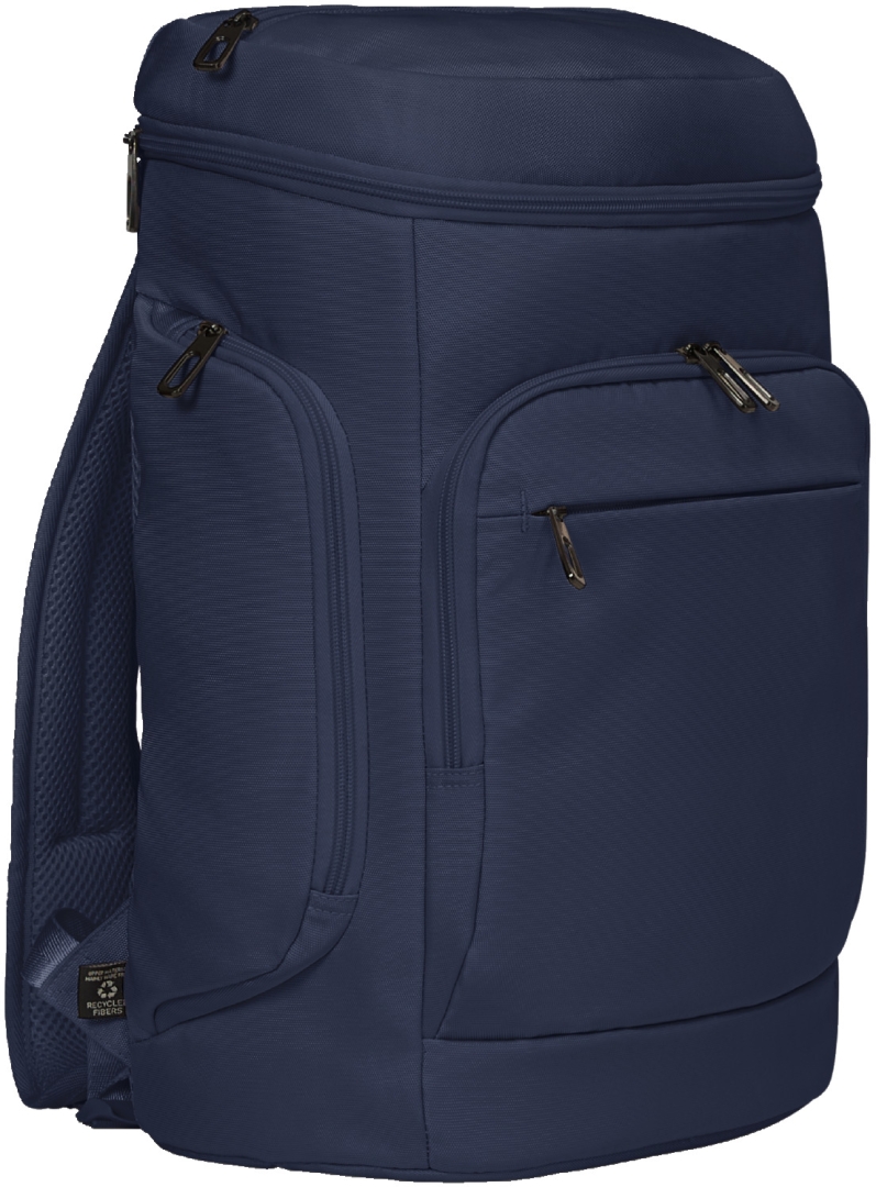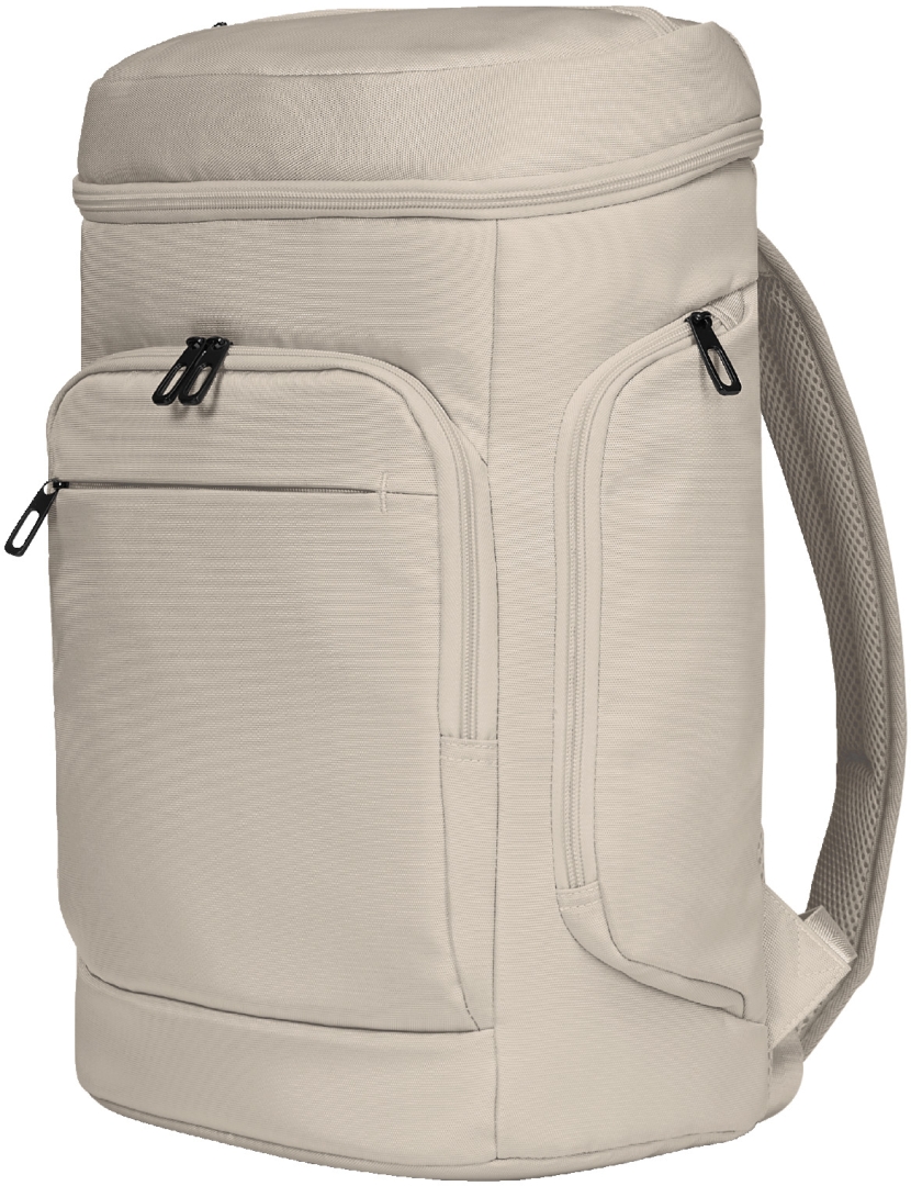 moderní, vysoce kvalitní batoh na notebook s recyklovanou tkaninou; plně polstrovaný hlavní prostor s třístranným dvoucestným zipem pro pohodlné balení; světlá vnitřní podšívka pro optimální přehlednost; velká polstrovaná přední kapsa s dvoucestným zipem a izolační funkcí, ideální např. na svačinový box; další ploché pouzdro na zip; plochá kapsa na zip ve víku; dvě boční kapsy na zip; uvnitř: polstrovaný přihrádka na notebook s upevňovacím popruhem, skrytá kapsa na AirTag, síťovaná kapsa na zip; ergonomicky polstrovaný nosný systém s nastavitelným hrudním popruhem; popruh pro připevnění na vozikovi tyč; rukojet