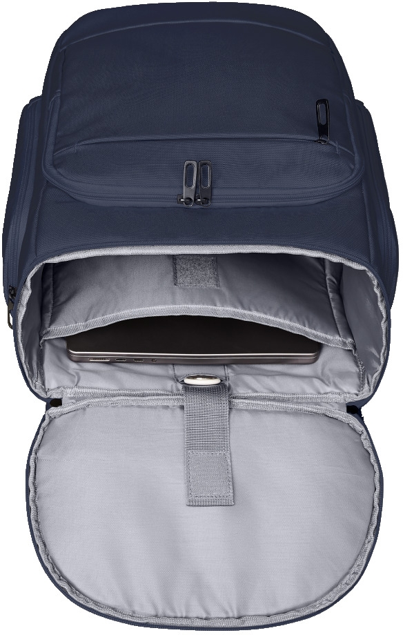 moderní, vysoce kvalitní batoh na notebook s recyklovanou tkaninou; plně polstrovaný hlavní prostor s třístranným dvoucestným zipem pro pohodlné balení; světlá vnitřní podšívka pro optimální přehlednost; velká polstrovaná přední kapsa s dvoucestným zipem a izolační funkcí, ideální např. na svačinový box; další ploché pouzdro na zip; plochá kapsa na zip ve víku; dvě boční kapsy na zip; uvnitř: polstrovaný přihrádka na notebook s upevňovacím popruhem, skrytá kapsa na AirTag, síťovaná kapsa na zip; ergonomicky polstrovaný nosný systém s nastavitelným hrudním popruhem; popruh pro připevnění na vozikovi tyč; rukojet