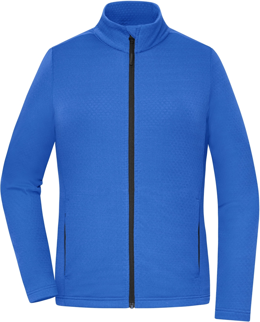 Strečová fleecová bunda z recyklovaného polyesteru pro sport a volný čas. Příjemně měkká, bielastická tkanina. Hladká vnější strana, uvnitř strukturovaný fleece. Celopropínací podložený zip s ochranou brady. 2 boční kapsy na zip. Kontrastní zipy. Stojáček. JN1387: jemně vypasovaný střih.