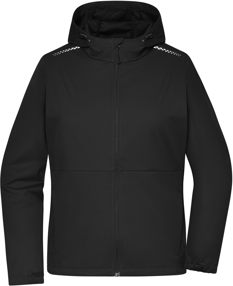 3vrstvá softshellová bunda z recyklovaného polyesteru pro sport a volný čas. Lehká a příjemně měkká softshellová tkanina s TPU membránou. Větru a vodě odolná (vodní sloupec 5 000 mm). Prodyšná a paropropustná (1 000 g/m²/24h). Pevná a nastavitelná kapuce. Podložený zip s ochranou brady. 2 boční kapsy na zip. Všechny zipy v kontrastní barvě. Nastavitelná šířka lemu pomocí elastické šňůrky a zarážky. Reflexní potisk na zádech nad spodním lemem a na předním ramenním švu (bez OOP). JN1393: jemně vypasovaný střih.