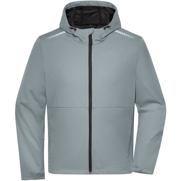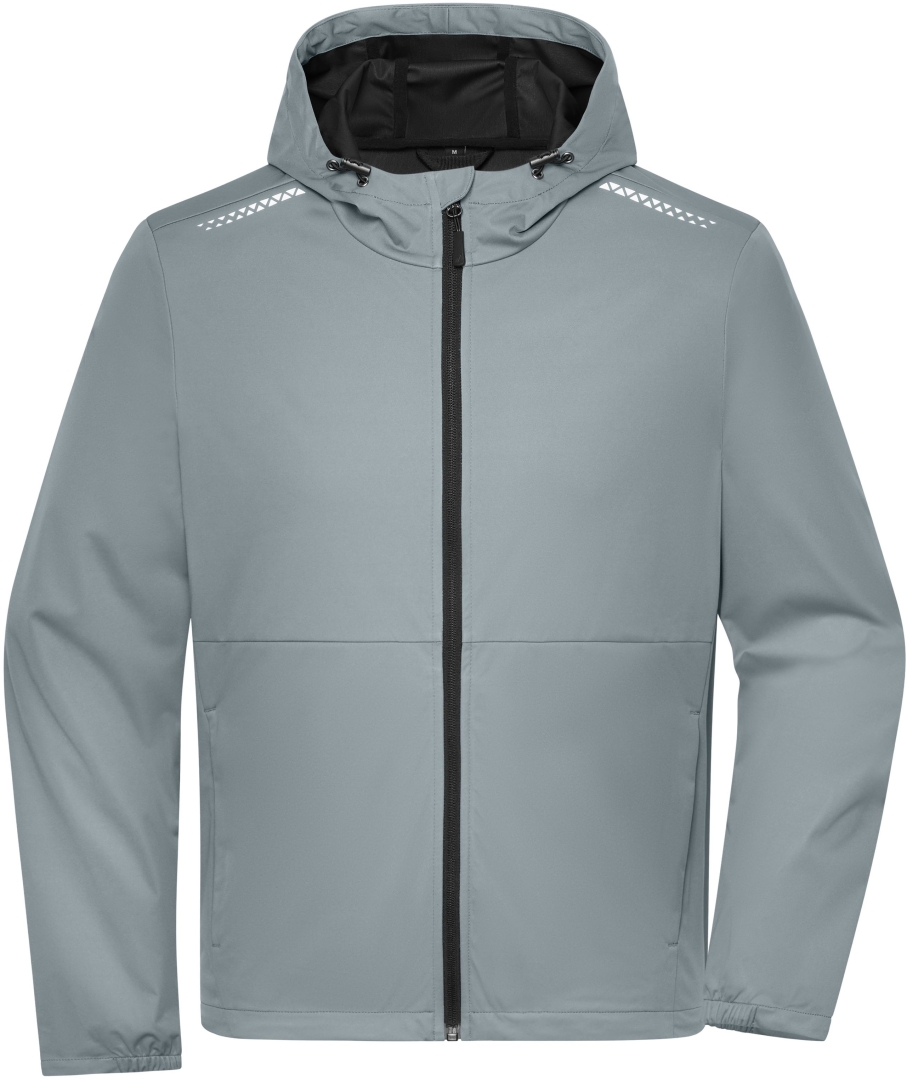 3vrstvá softshellová bunda z recyklovaného polyesteru pro sport a volný čas. Lehká a příjemně měkká softshellová tkanina s TPU membránou. Větru a vodě odolná (vodní sloupec 5 000 mm). Prodyšná a paropropustná (1 000 g/m²/24h). Pevná a nastavitelná kapuce. Podložený zip s ochranou brady. 2 boční kapsy na zip. Všechny zipy v kontrastní barvě. Nastavitelná šířka lemu pomocí elastické šňůrky a zarážky. Reflexní potisk na zádech nad spodním lemem a na předním ramenním švu (bez OOP). JN1393: jemně vypasovaný střih.