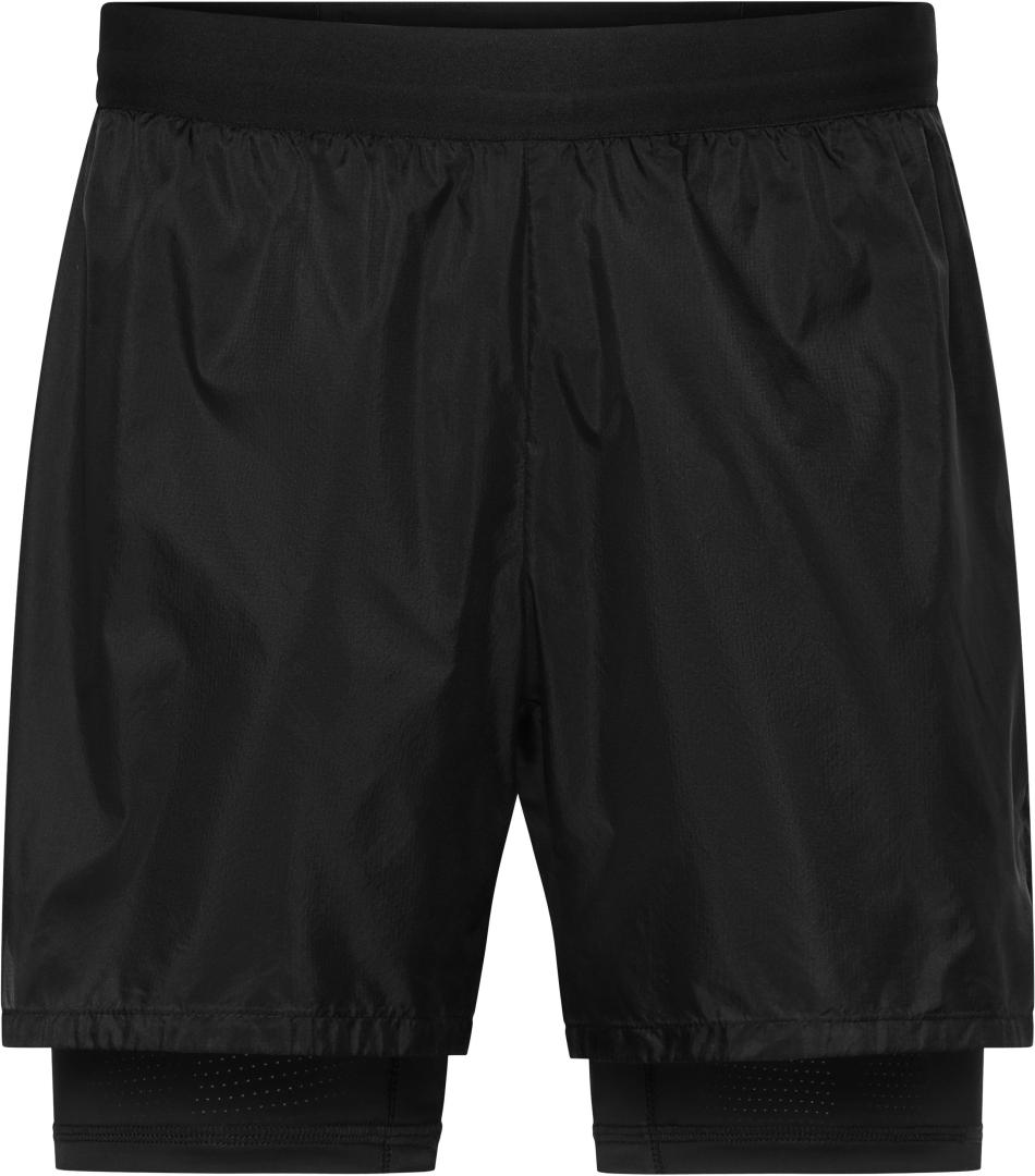Lehké běžecké kraťasy pro běh, sport a fitness. Tenká, elastická tkanina na vnější straně a integrované, přiléhavé vnitřní nohavice z příjemně měkkého elastického žerzeje s prodyšnou strukturou. Módní střih s viditelnými vnitřními nohavicemi u lemu. Elastický pas s vnitřní šňůrkou na stažení. 1 kapsa na mobilní telefon se zipem vzadu pod pasem. Boční švy s rozparky. Reflexní potisk nad bočními rozparky (bez OOP).