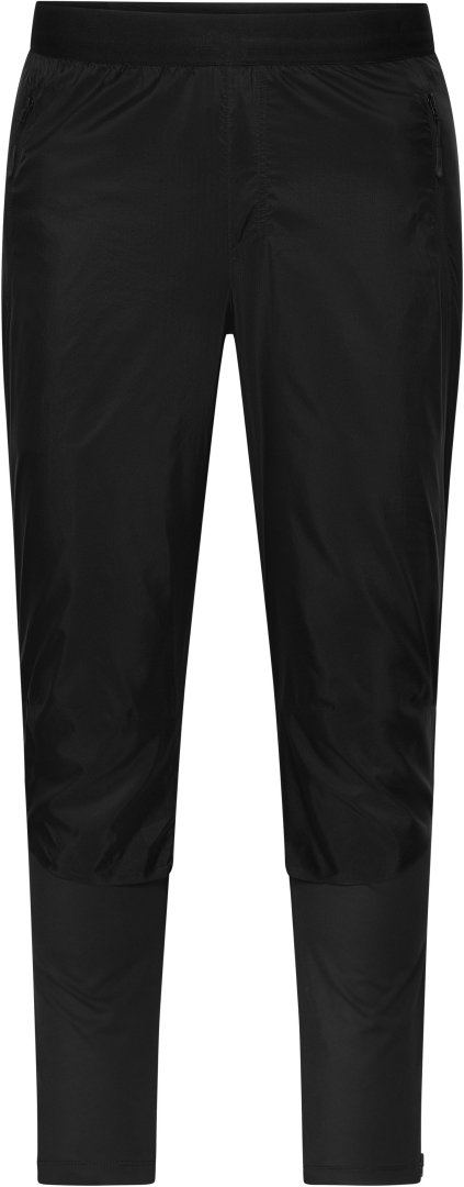 Stylové hybridní kalhoty pro běh, sport a fitness. Příjemně měkká, elastická tkanina s přídavnými tkanými vsadkami v oblasti kolen a stehen. Moderní střih s předtvarovanou oblastí kolen. Elastický pas s vnitřní šňůrkou na stažení. Dvě boční kapsy na zip. Jedna kapsa na mobilní telefon se zipem vzadu pod pasem. Nohavice lze rozšířit pomocí bočního zipu. Reflexní potisk nad zadním lemem (bez OOP).