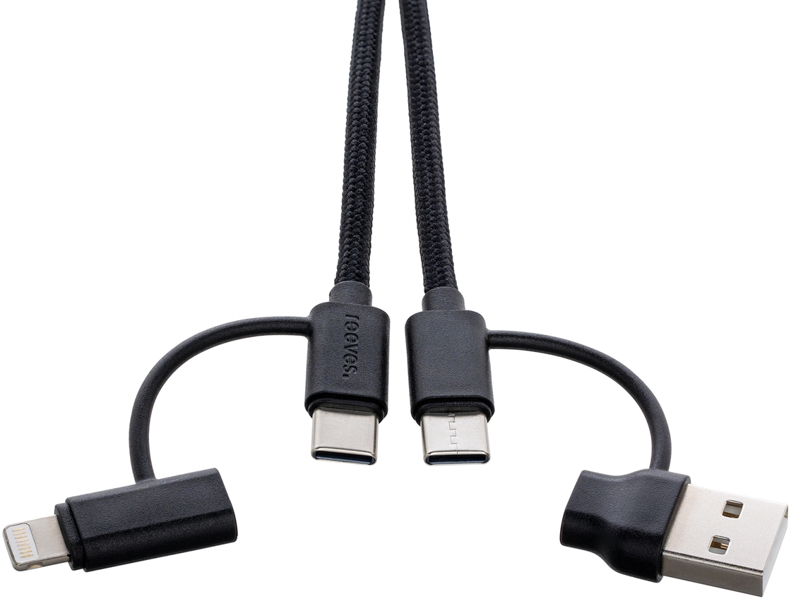 - 4-in-1 data and charging cable with: 8-Pin for Apple® devices, 2 x USB-C, USB-A<br />