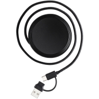 Made from RABS and RPET, the compact wireless charger also features a large surface ideal for premium branding via pad printing. The interior clip can additionally be customized with laser engraving.<br />