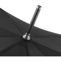Convenient automatic function for quick opening, Windproof system for higher flexibility and stability in windy conditions, flexible fibreglass ribs, polyester pongee cover material made of recycled plastics, depending on the colour, also available with waterSAVE® cover material and with waterSAVE® label on the closing strap (with new deliveries), wooden tips, straight wooden handle with promotional labelling option, higher corrosion protection due to galvanized steel shaft