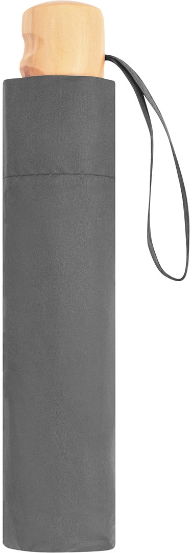 Easy to handle thanks to safety runner, high-quality Windproof PLUS system for maximum frame flexibility in stormy conditions, polyester pongee cover material of recycled plastics, with waterSAVE® label on the closing strap (with new deliveries), wooden handle with promotional labelling option