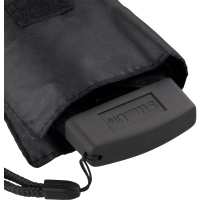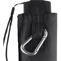 High-quality Windproof PLUS system for maximum frame flexibility in stormy conditions, chromed steel shaft, extra lightweight cover, flat Soft-Touch handle with promotional labelling option, carry case with practical snap hook for fixing on backpack or bag, suitable for handbag due to its extreme light weight, space-saving extra flat execution