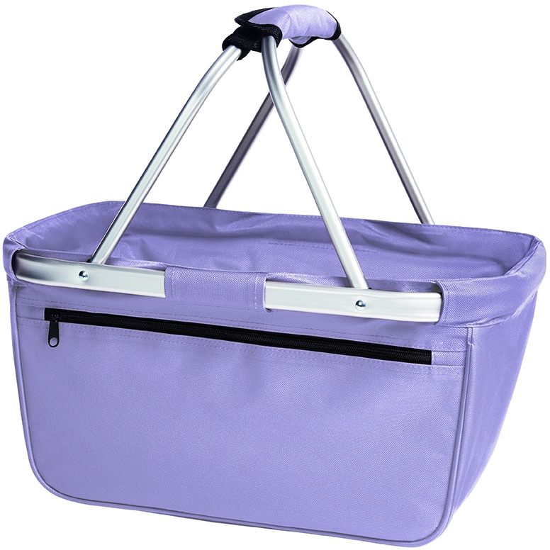všestranný nákupní košík s hliníkovým rámem a kapsou na zip; možno složit