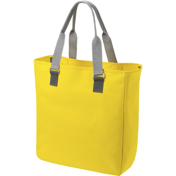pěkně tvarovaná, velká nákupní taška s dekorativními kovovými přezkami a dvoubarevným popruhem; hlavní díl se zavìšenou kapsičkou se zdrhovadlem a organizérem