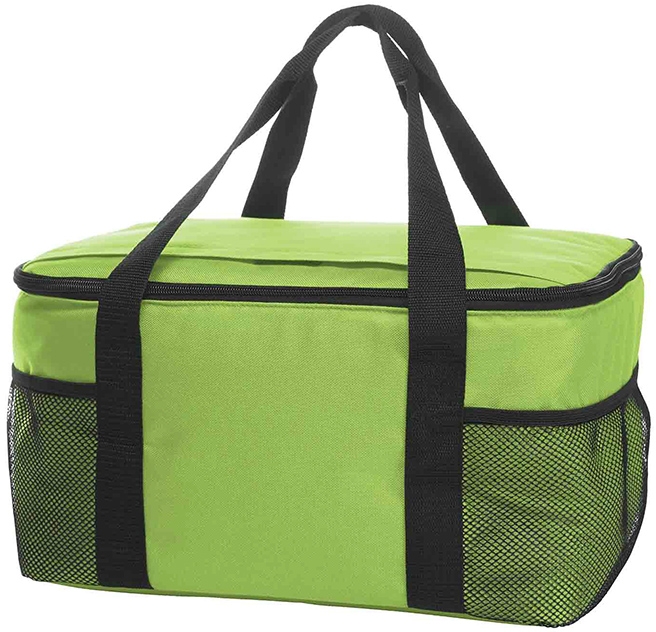 velký hlavní díl s dvoucestným zipem; síťové boční kapsy; kapsa na horní straně; držadla